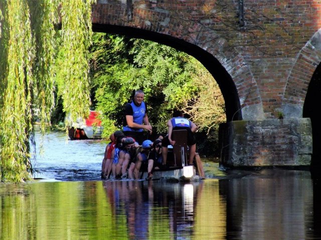 Die 5- Bank Boote hatten zweimal die Außenunde zu durchpaddeln. Sie benötigten im Schnitt ein bis zwei Minuten mehr Zeit für eine Runde als die 10-Bank Boote. Sieger bei den 5-Bank Booten wurde die Mannschaft der Oldenburger Thunderdragons vor den Likedeelern und dem Team Boot vom RV Leer.